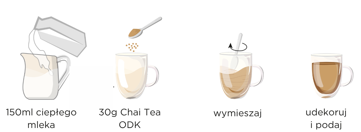 Chai Tea ODK pozwala poczuć nutę orientu w Twojej filiżance – wystarczy dodać odrobinę mleka. Szybka w przygotowaniu i jeszcze łatwiejsza w delektowaniu się.