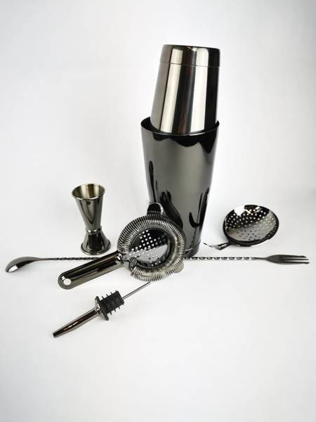 - Zestaw barmański czarny błyszczący Gun metal black 6 elementów