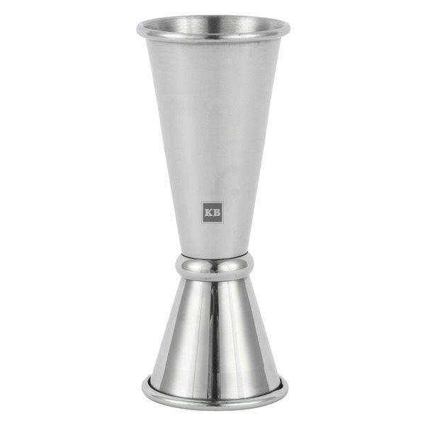 Jigger japoński miarka barmańska srebrna polerowana. Wykonana w stylu japońskim z charakterystycznym pierścieniem łączącym na środku i stożkowym kształcie dwóch miarek o pojemności 25/50ml plus dodatkowo 15 ml i 35ml wewnątrz miarek.