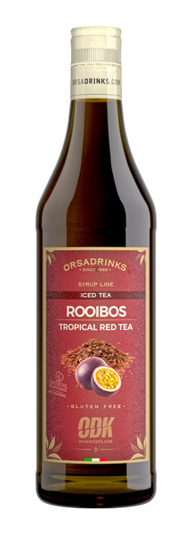 Syrop ODK Rooibos Tropical to czerwona herbata o tropikalnym smaku, wzbogacona egzotycznym aromatem marakui. To połączenie tworzy przyjemny, owocowy i otulający napój, przywodzący na myśl klimaty tropikalne.