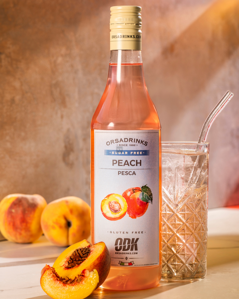 Syrop bezcukrowy Peach ODK zawiera jedynie 4 kcal na 100ml produktu! Zawiera autentyczną esencję najlepszych, wyselekcjonowanych brzoskwiń, bez dodatku cukru. Dzięki właściwościom brzoskwini syrop ten charakteryzuje się intensywnym smakiem i przyjemnym aromatycznym zapachem. To idealny składnik, który doda Twoim wyrobom słodkiej i świeżej nuty.