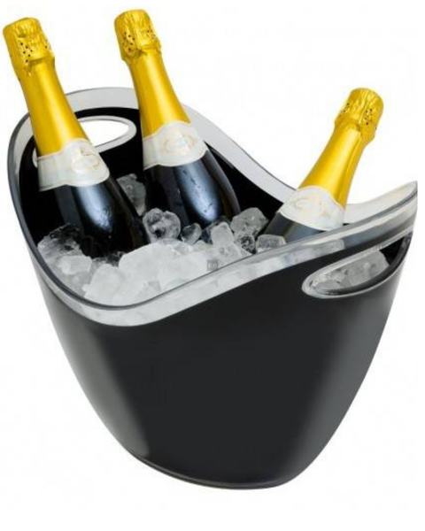 Stylowy i funkcjonalny cooler do szampana to idealne rozwiązanie w barach, restauracjach, hotelach oraz lokalach gastronomicznych i przyjęciach okolicznościowych. Klasyczny czarny kolor pasuje do wielu wystrojów sal, a przezroczysta obramówka dodaje mu lekkości.
